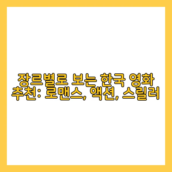 한국 영화는 그 다양성과 깊이로 세계에서 주목받고 있습니다. 특히 로맨스, 액션, 스릴러 장르는 많은 관객들에게 사랑받는 대표적인 장르들입니다. 이번 포스팅에서는 각 장르별로 추천할 만한 최신 한국 영화를 소개하겠습니다. 각 작품의 줄거리와 감독, 주연 배우 정보를 통해 여러분이 영화를 선택하는 데 도움이 되기를 바랍니다.