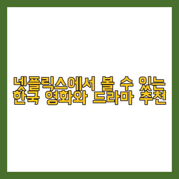 이처럼 넷플릭스는 한국의 다양한 영화와 드라마를 즐길 수 있는 훌륭한 플랫폼입니다. 현재 스트리밍 가능한 작품들을 참고하여, 여러분의 다음 관람 목록을 작성해 보세요! 넷플릭스에서 새로운 한국 콘텐츠의 매력에 빠져보시기 바랍니다.✨
