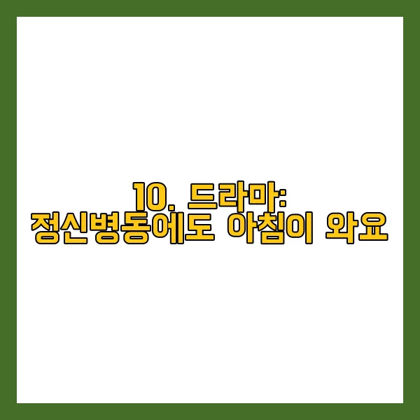 - 설명: 정신병동 간호사가 환자들과의 관계를 통해 성장하는 이야기를 담고 있으며, 따뜻한 감성과 더불어 사회의 편견에 도전합니다.