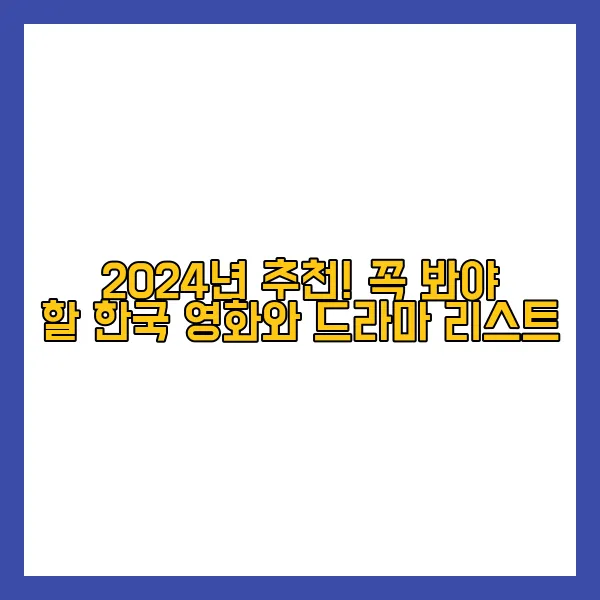 2024년이 다가오면서, 많은 한국 영화와 드라마가 기대를 모으고 있습니다. 다양한 장르와 흥미로운 줄거리로 팬들을 사로잡을 작품들이 가득한데요, 그렇다면 어떤 작품들이 우리를 기다리고 있을까요? 이번 포스트에서는 2024년에 꼭 봐야 할 한국 영화와 드라마를 소개해드리겠습니다.